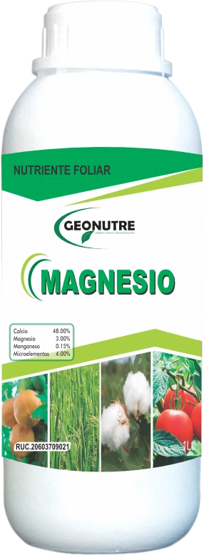Es un fertilizante foliar con una adecuada concentración de magnesio quelatado en aminoácidos, ácidos carboxilicos y enriquecido con algas marinas. Forma parte de la estructura de la clorofila, esta involucrado en el enlace de las sub unidades que constituyen los ribosomas e interviene en el metabolismo del Fósforo.